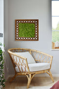 Nestled within a uniquely diamond-shaped wooden frame, vibrant apple green moss creates a striking visual that breathes life into any space. The rich, lush texture of the moss contrasts beautifully with the natural warmth of the wood, forming a harmonious...